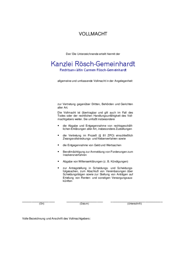 Weder durch den Abruf noch das übersenden der Vollmacht kommt ein Mandatsverhältnis zu Stande.